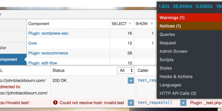 Query Monitor es un plugin diseñado para ofrecer un panel de herramientas avanzadas de depuración y análisis, permitiendo a los usuarios identificar consultas lentas a la base de datos, errores en PHP, conflictos con temas y plugins, llamadas a la API HTTP y mucho más.